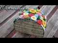Hucha de madera decorada con chalk paint y flores de porcelana fria. Manualidades DiY.